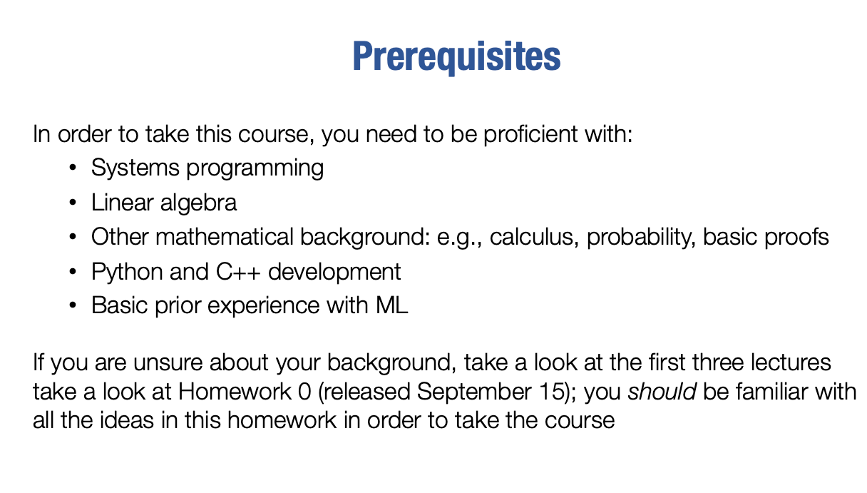 参加这门课程,你应该具备一些系统编程的背景,这意味着基本的C++编程知识,如何编译代码,如何编译可执行代码而不是仅仅运行Python脚本,可以将代码原生地运行在硬件上。