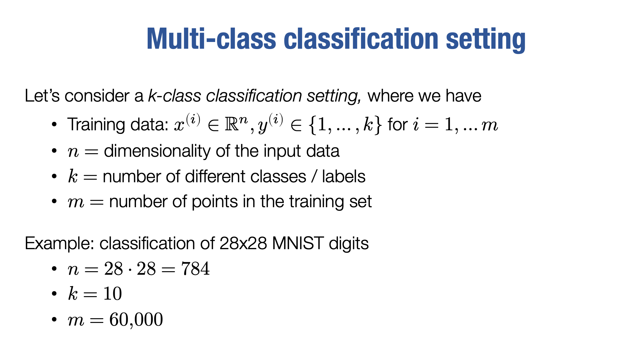 我们现在要讨论的是Muti-class classification,特别是一个k类分类问题。