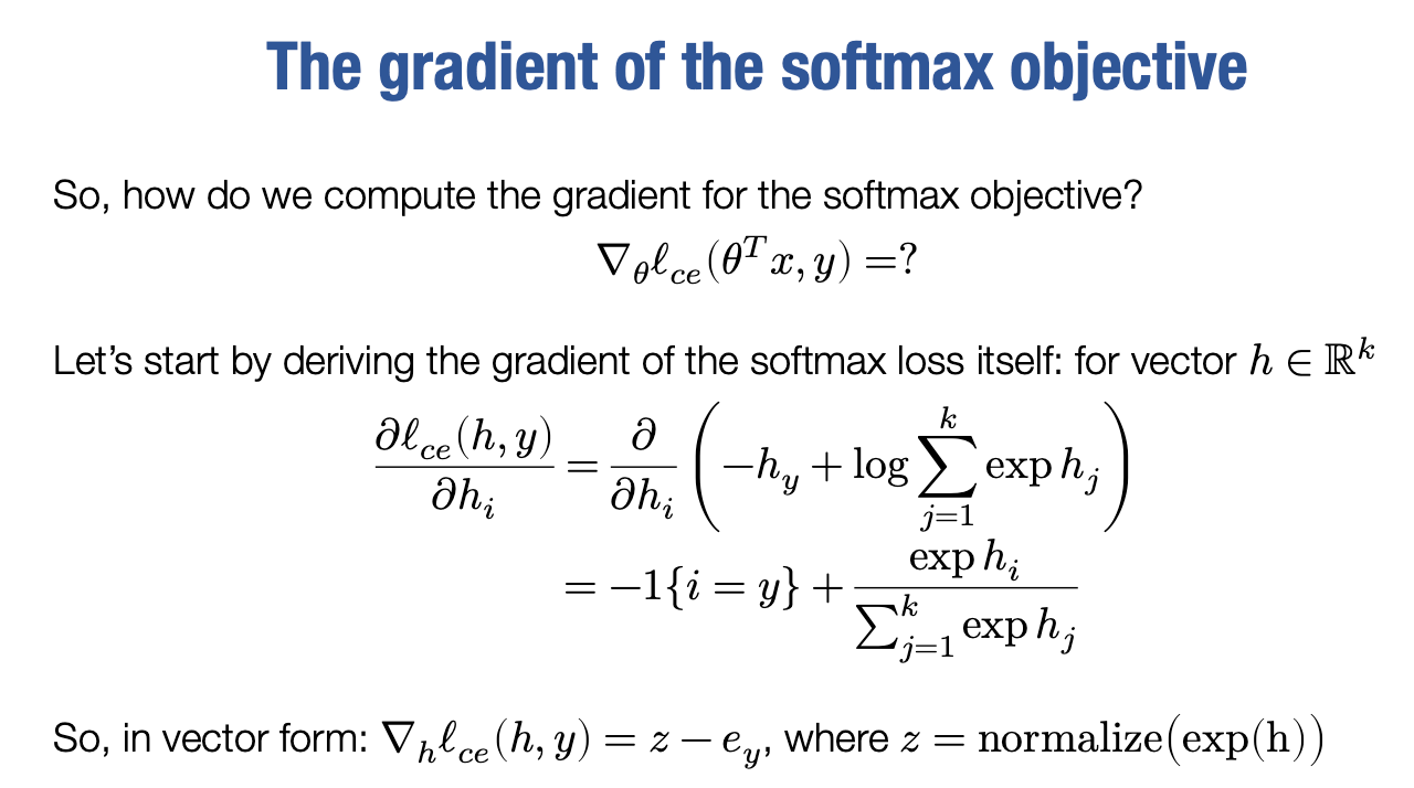 The gradient of the softmax objective