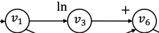特定节点表示了这个对数计算,它接收v1 的值作为输入,并输出 v3 的值,这个值被输入到计算 v6中。因此,每个节点代表计算中的中间值,而边表示这些计算之间的输入输出关系。每个计算图中的计算节点都有输入地址,表示它们的输入,而输出地址表示它们的输出去向。