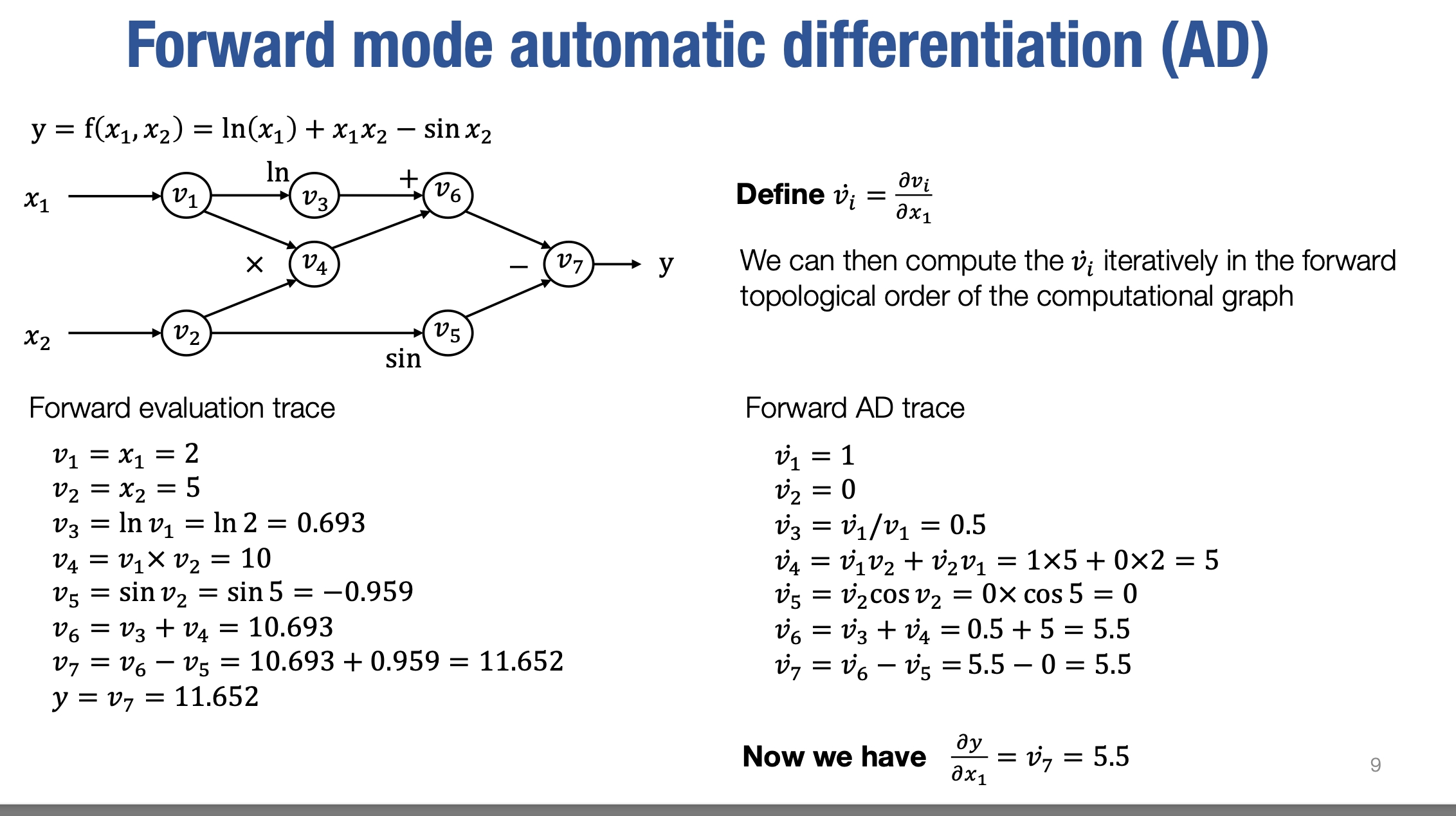 现在我们准备介绍第一种自动微分方法,它被称为前向模式自动微分(forward mode automatic differentiation )。