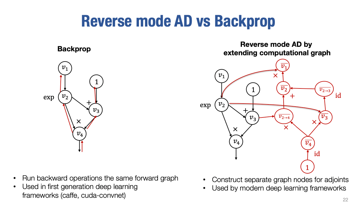 所以你可能会有一个问题:**反向自动微分(Reverse Mode AD)**和我们在过去几堂课中讲的反向传播有什么区别?