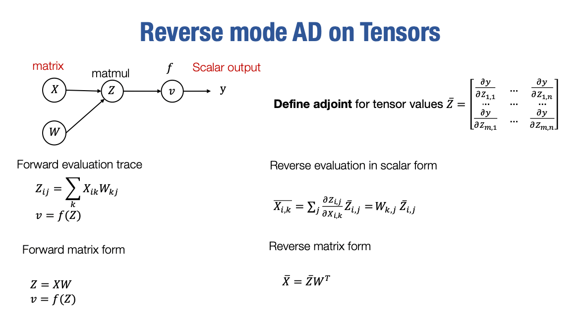 Reverse mode AD on Tensors